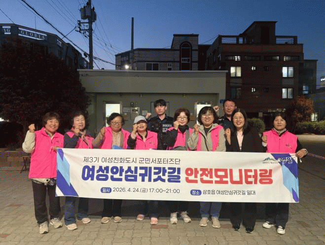 군은 지난 24일 삼호읍 대불금호아파트 정문을 시작으로 원룸촌, 상촌마을 일대 등에서 제3기 여성친화도시 군민서포터즈단, 영암경찰서, 공무원 등 25명이 참여한 가운데 합동 안전 모니터링을 실시했다.