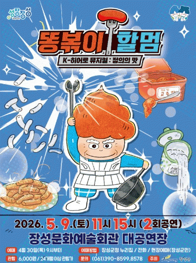 예매는 오는 30일 오전 9시부터 시작되며, 장성군 누리집 또는 문화교육과에 전화해 진행하면 된다.